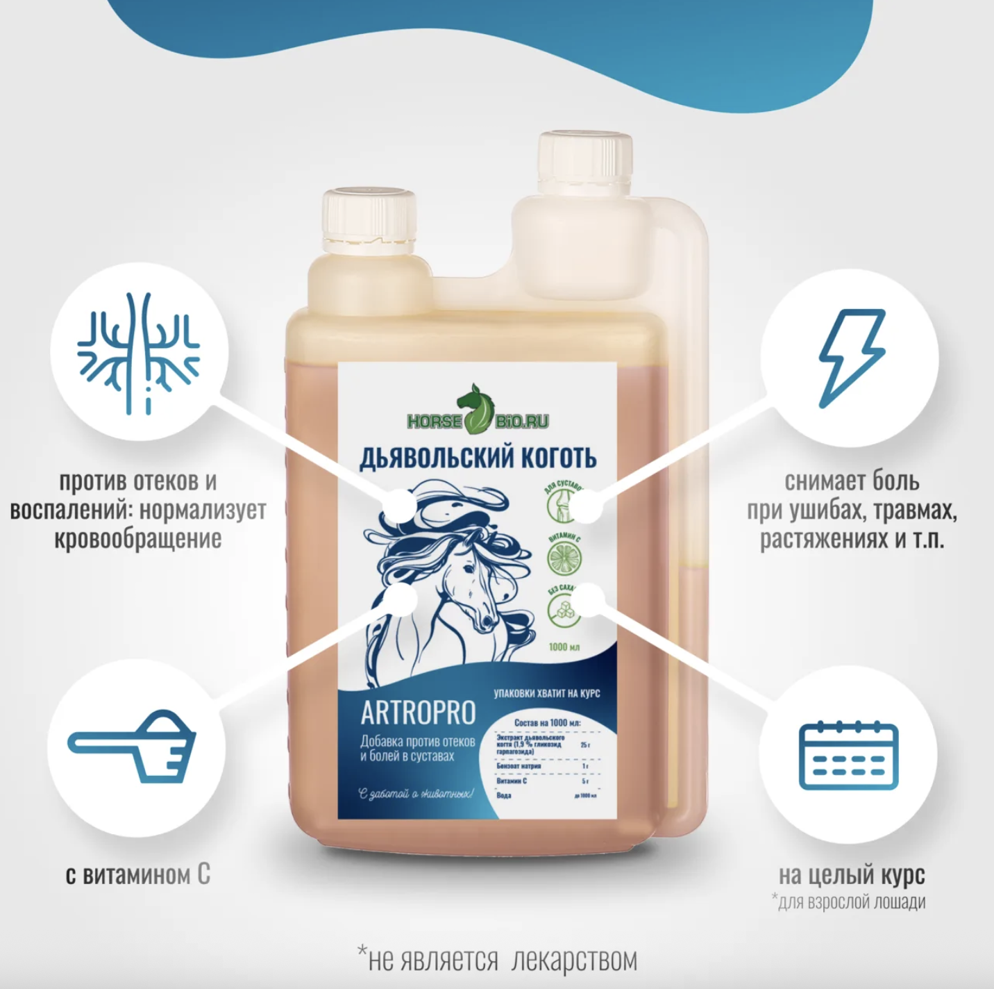 Эликсир ДЬЯВОЛЬСКИЙ КОГОТЬ ArtroPro с витамином С для лошадей