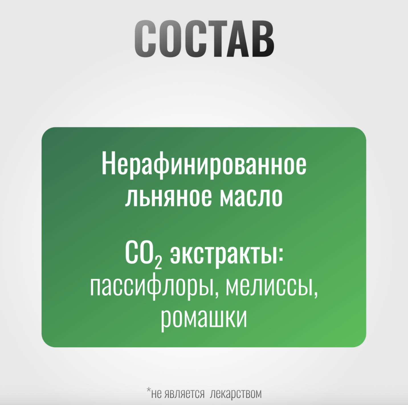Натуральный состав: Эликсир содержит только природные компоненты – СО2-экстракты пассифлоры, мелиссы и ромашки, а также нерафинированное льняное масло, что обеспечивает высокую безопасность применения.