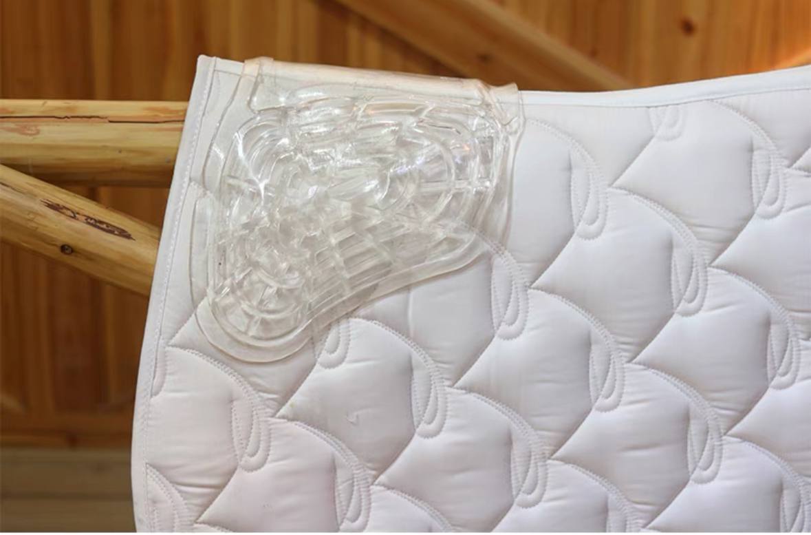 Гель разработан для снижения давления на спину, куда приходится не малая часть веса всадника. Липкая структура геля обеспечивает прилипание к седлу и минимизирует дискомфорт от движений всадника, сбоку, сзади и спереди. Такой гель подходит для всех лошадей, с ним седло отлично ложится на спину. Если необходимо приподнять переднюю или заднюю часть седла, уменьшив давления на эти области можно приобрести дополнительные подушки для этих областей.