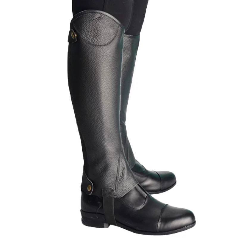 Молния расположена сзади, а эластичная вставка-резинка позволяет легче подобрать размер и способствует плотному прилеганию к ноге, за счет чего краги не сползают во время езды.