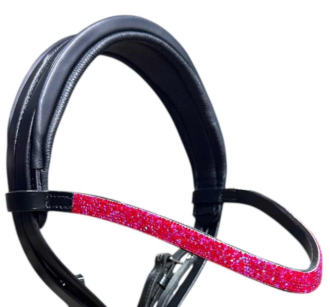 Кастомная уздечка с мексиканским капсюлем от немецкого производителя Otto Schumacher из качественной кожи и с ярким налобным ремнем из кристаллов Swarovski.