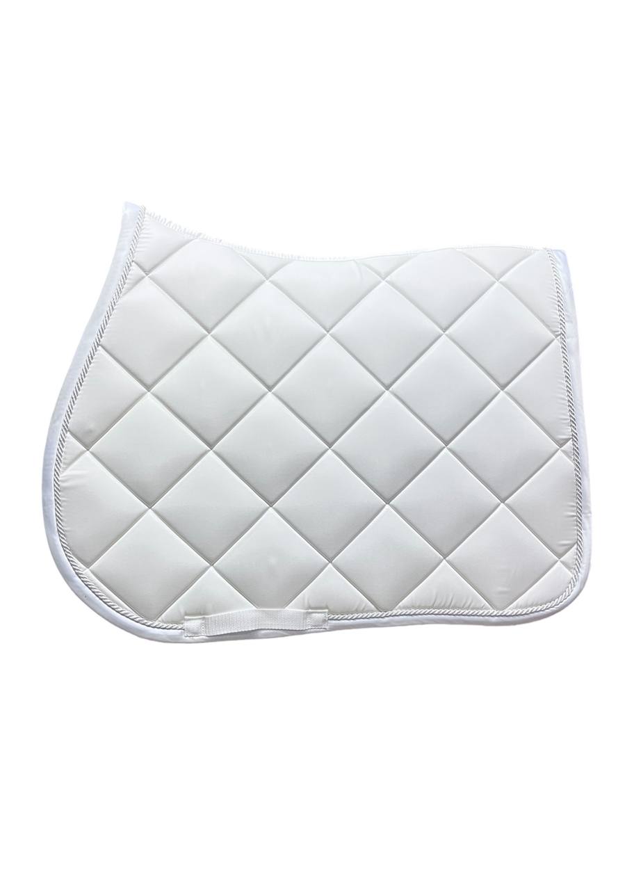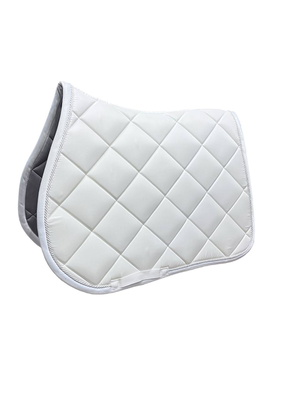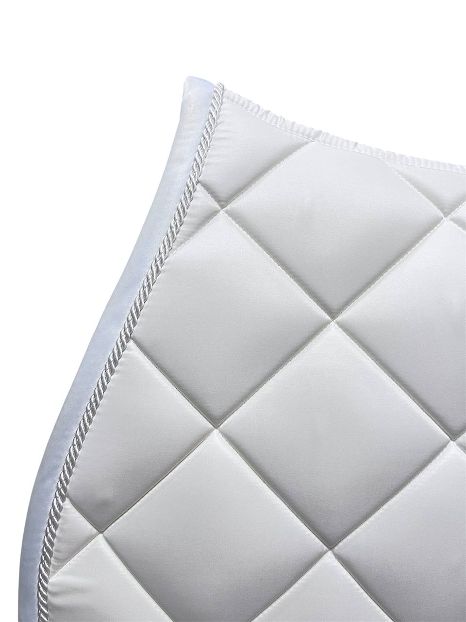 Белый конкурный вальтрап имеет анатомическую форму с приподнятой холкой, за счет чего прекрасно ложится на спину лошади и не сползает во время активной работы.